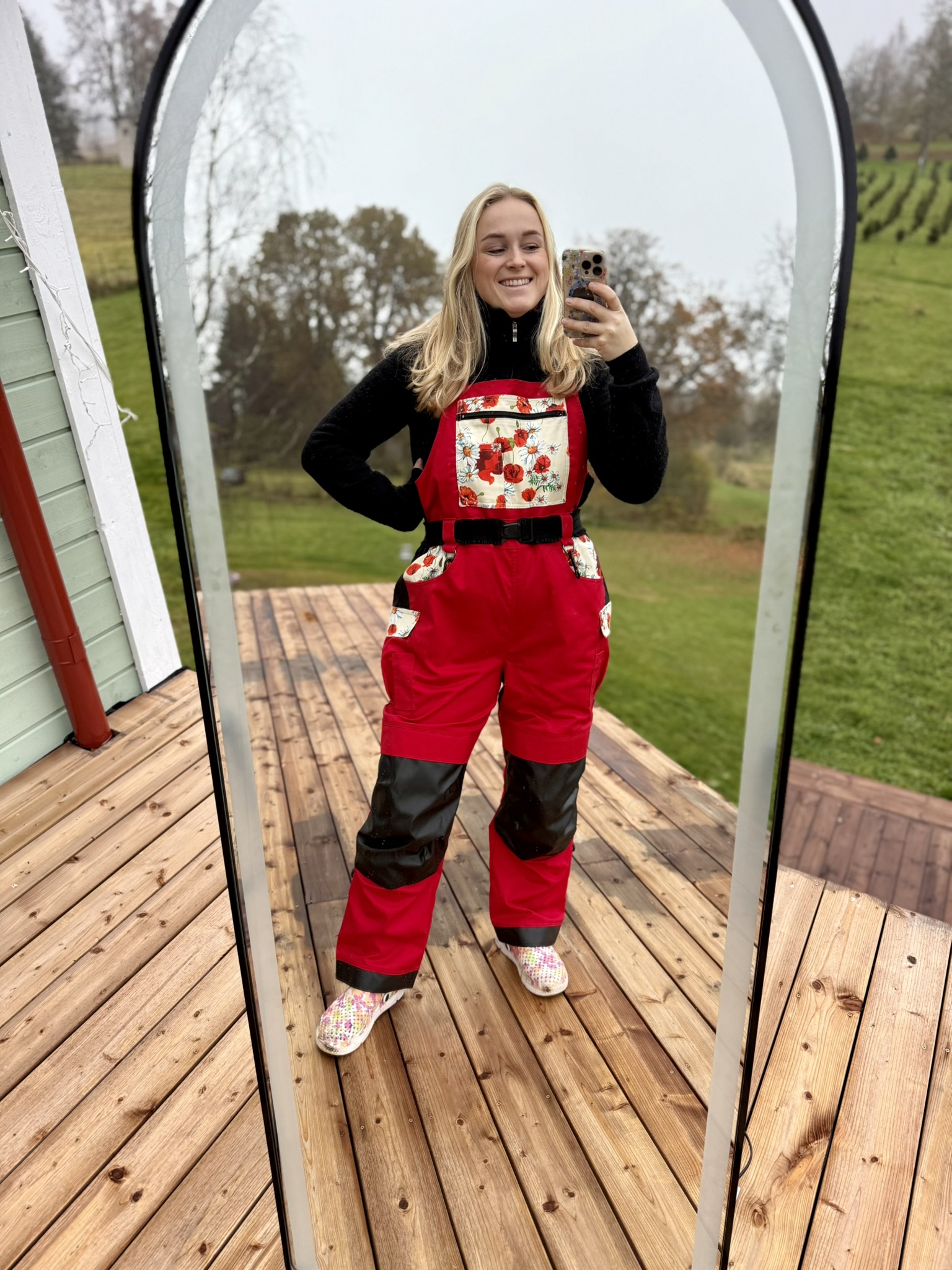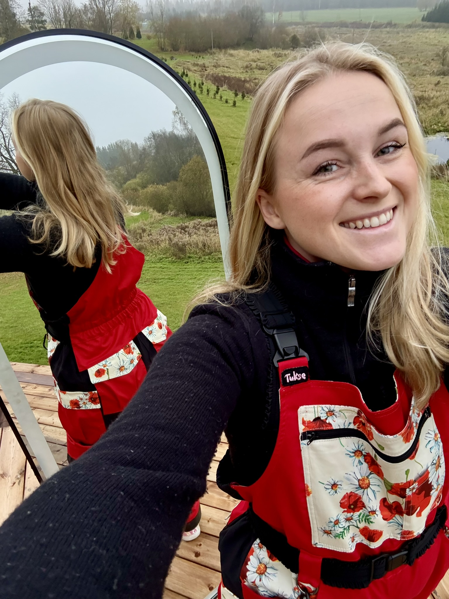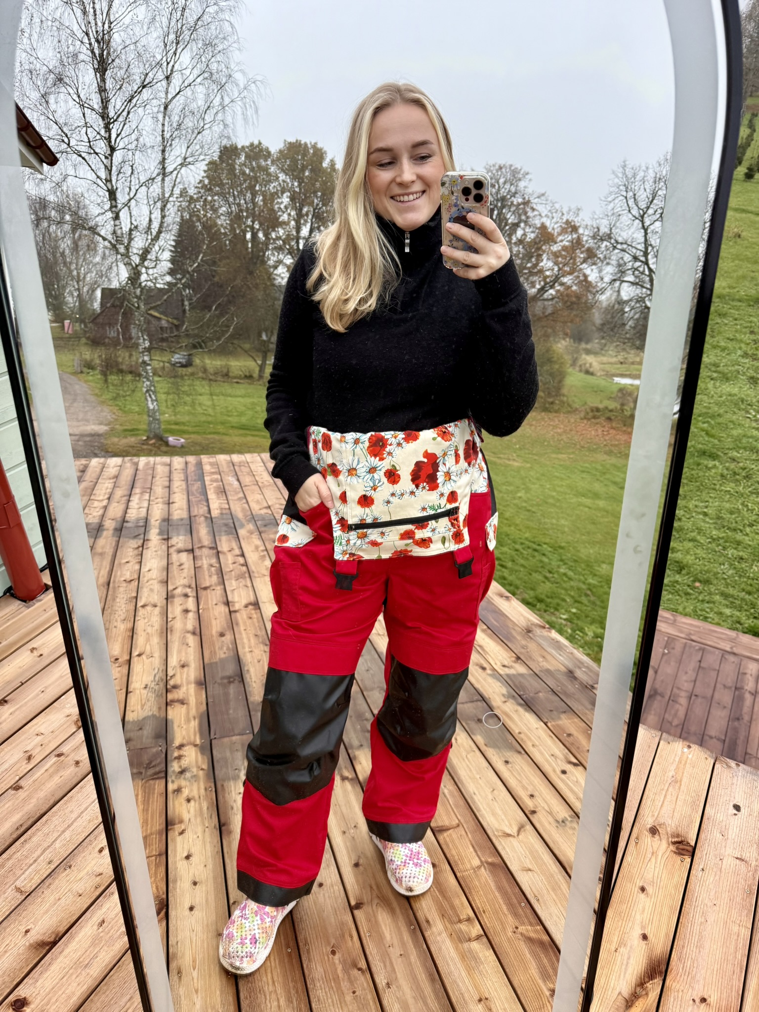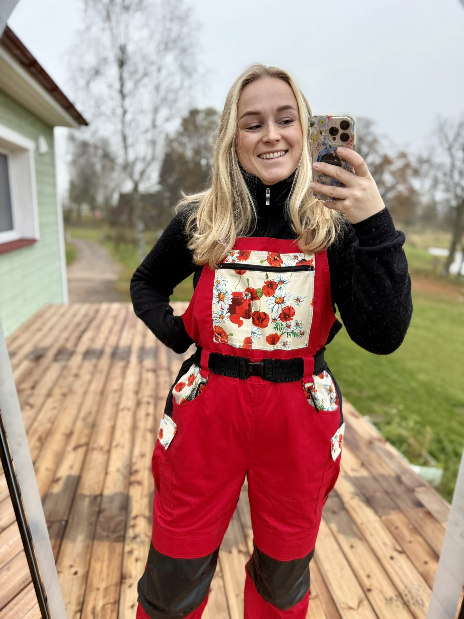 Naiste tööriided: Tugev versioon sobib jahedamate ilmadega välitöödeks. Punane põhitoon ning valik erinevaid musterkangaid.